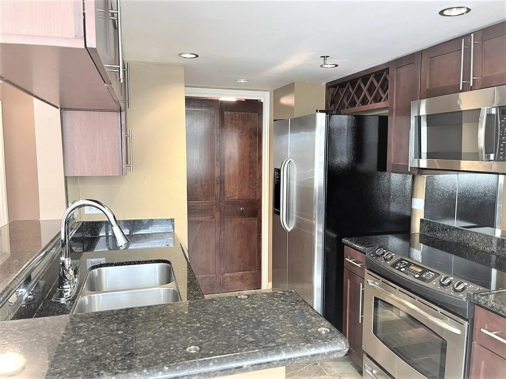 Lovely, resort-style living! Elegant and luxuriously appointed lobby with 24/7 concierge, who greets you and your guests. The lobby entrance is secured through concierge. There are several seating areas, a business center & a private clubroom with a catering kitchen for the residents. Elevator access with fob only. Lovely pool oasis with covered outdoor kitchen & grill. Athletic center with extensive equipment is available to residents. No need for a gym membership! Common areas are kept very clean. Primary bedroom with ensuite bath and secondary on other side with hall bath. Great for roommates! Primary bedroom closet is professionally designed. Kitchen has rich wood grain cabinets & granite counters. Abundance of natural light. The balcony view is just above the treetops and affords a pleasant outside area. Tile floors throughout for easy maintenance. PET FRIENDLY, BEST LOCATION FOR SHOPPING, RESTAURANTS AND FREEWAY ACCESS! Tenant occupied until May, 2026.