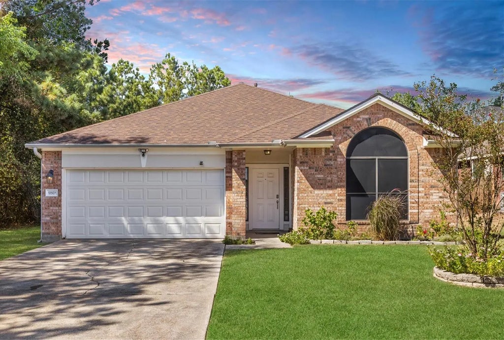 NEW Roof, Whole House Water Softener, Whole House Gutters & Guards, Upgrades and Improvements galore in this charming 1-story home in a GREAT location! This impeccably maintained 3 bedroom 2 bath home features warm vinyl plank floors in main areas and a spacious family room with cozy fireplace. High quality 2" blinds on all windows with beautiful arched transoms covered with fan-style shutters. Dining room opens to kitchen with granite counters, stainless steel appliances, gas range and walk in pantry. Owner's retreat is a true RETREAT! With back yard view, ensuite spa bathroom with double sinks, granite counters, jacuzzi tub, and gorgeous glass encased separate shower. Colored stamped back patio and walkway added in 2022 to the lush green backyard with NO BACK neighbors and NO LEFT neighbors! Private and cozy small neighborhood nestled just off 1097W, less than 1 mile to H-E-B, and just minutes from Conroe and The Woodlands!