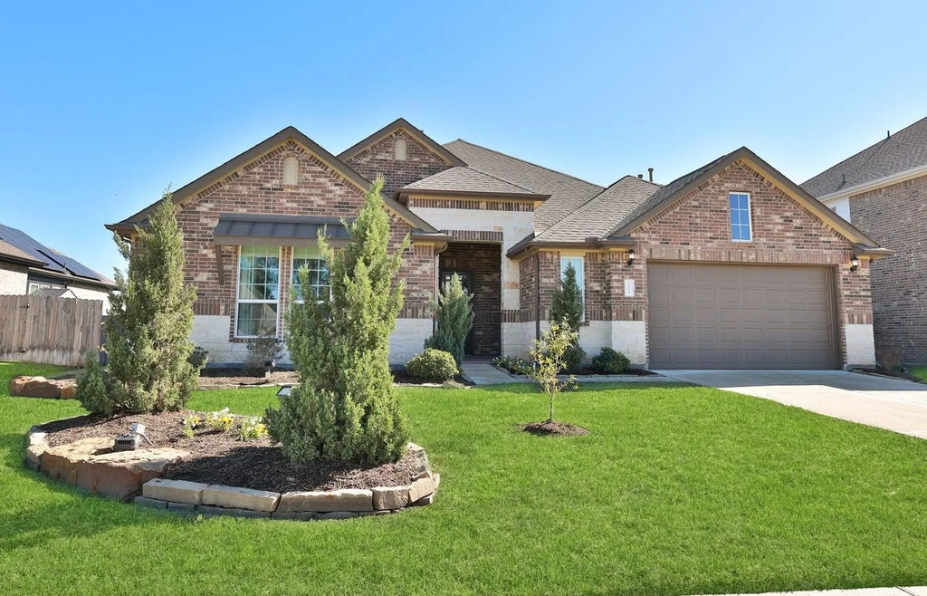 Princeton Homes Former Model home in Lilac Bend, Katy. 4 sides brick, this 1 story home has 4/5 bedrooms with 3.5 bathrooms. 8' Frnt Door. Whole House Generator. Incredible high-end engineered wood flooring, open spacious flrplan. High Ceiling. Kitchen has LOTS of Quartz cntrtps. Under-mounted SS farmhouse sink. 42in painted maple cabinets in popular Shaker style. Marquis 36" Whirlpool SLG Oven. 36" BUILT-IN GAS COOKTOP. 36" VENT HOOD. SPACIOUS living/dining area. Custom wall treatment. Fireplace w/Gas logs, direct vented and remote on/off. HUGE windows in the living rm have REMOTE CONTROLLED up/down shades. As do window coverings in the primary bedrm. Split floorplan. Covered back patio. Note the 2 side yard spaces, both large enough for pet runs/play areas. Sprinkler system. Inside garage MUD room area w/ bench. Storage closet. Home has solar panels that are included in the sale - buyer will have to contact a solar provider to connect. Desired KATY ISD. NO MUD TAXES. Hurry!
