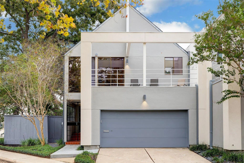LIVE, LOVE, LOCK and LEAVE. Not often do townhomes on this quiet cul-de-sac street in Bellaire come on the market. This striking stucco 2/2/1, designed by renown architect Alan Hirschfield, is less than one block from Evelyn’s Park. This 2-story timeless contemporary is MOVE IN READY. NEW ROOF/SKYLIGHTS (2025), NEW SLIDING GLASS DOORS (incl doggy door) and WINDOWS (2025), granite counters, SS appliances, elevated ceilings, wood burning fireplace, two AC units and open floorplan connecting living/dining/kitchen. Enjoy the raised wooden deck & fenced private side yard, perfect for pets. Spacious primary boasts custom (his/her) closets, dual vanities and an expansive balcony. The secondary BR has a built-in "work from home" area and ensuite bath. Upstairs loft provides flex space illuminated by natural skylight. Zoned to Bellaire schools, #16 is a low maintenance home. Affordable opportunity to enjoy living "inside the loop". Low HOA fees. Never flooded (per seller).