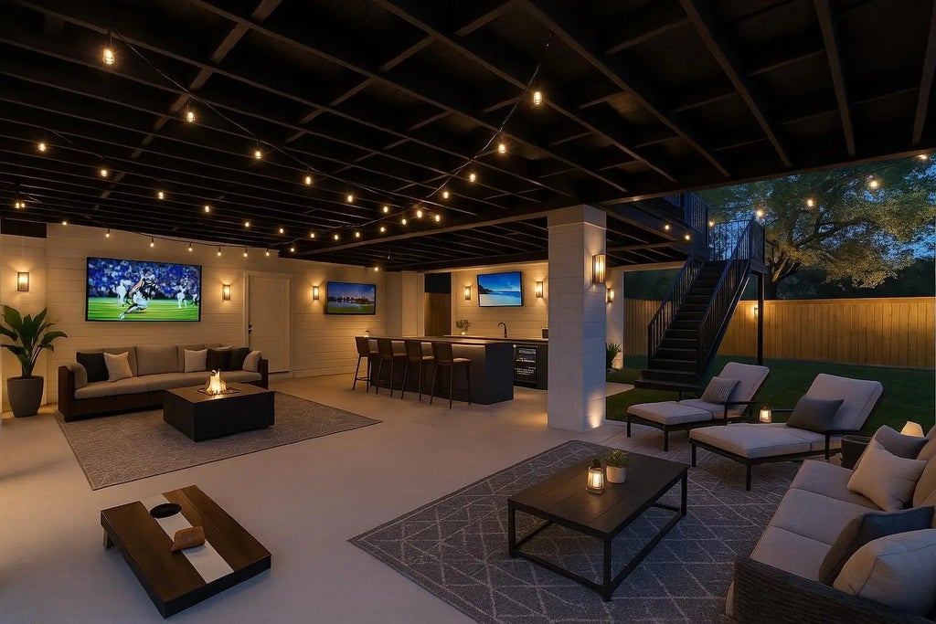 Nestled in Houston’s prestigious Timbergrove Manor, this luxurious 4,418 sq. ft. new construction blends elegance, comfort, and functionality. Featuring 6 bedrooms, 4.5 baths, a private study, and a formal dining room, the home is filled with natural light and thoughtful design. The main floor offers a stunning primary suite with 15' vaulted ceilings and a spacious guest suite with a full en-suite bath. The chef’s kitchen boasts an 8x4 island, black luxury appliances, soft-close cabinetry, butler’s pantry, and ample storage. The great room opens to a massive covered patio through sliding glass doors. Upstairs includes 4 bedrooms, 2 baths (including a Jack & Jill), and a private balcony. A 1,500 sq. ft. finished ground-level flex space with LED lighting offers endless possibilities. 2-car garage connects to the covered area below. Gutters with French drains. Near trails, parks, shops, and restaurants.