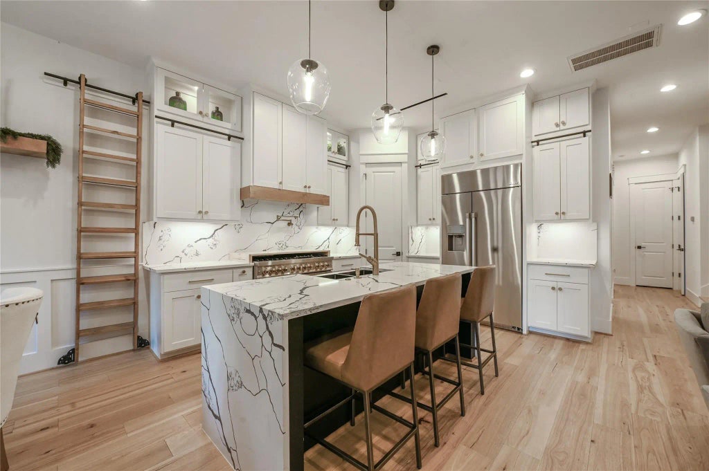 Located in the heart of the Houston Heights, this home was built in 2022, making it one of the last newer construction homes before becoming a historic neighborhood. This home showcases high-end luxury finishes throughout. Thoughtfully designed, the architecture complements the rich history of the Heights while offering modern sophistication. Inside, a private office provides the perfect space for work or creativity. The property also includes a fully functional detached one-bedroom, one-bath garage apartment—ideal for guests, rental income, or an in-law suite. The private backyard is perfect for entertaining, featuring turf and concrete pads for a sleek, low-maintenance outdoor retreat. Guest apartment is currently being leased out for $1,450 per month