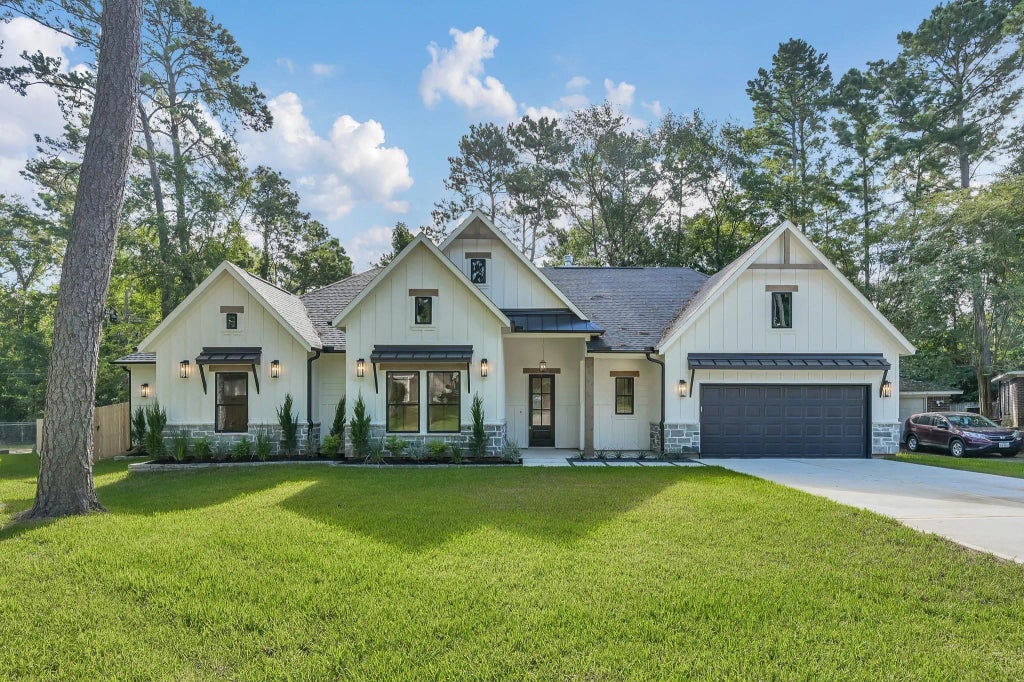 Come tour this BEAUTIFULLY staged, custom Farmhouse in Corinthian Point, lakeside community! Crafted by Ash Design + Build, this home blends high-end details with a functional design. Step inside to a grand foyer, white-oak hue LVP flooring, abundance of lighting & 8' doorways throughout. Chef’s dream kitchen - Taj Mahal quartzite countertops, venetian plastered vent hood, appliance-garage cabinetry, pot filler & oversized 9x4 island. With ample counter space, cabinetry, & walk-in pantry, this kitchen is as functional as it is stunning. The living area boasts a vaulted ceiling accented with exposed wood beam w/matching floating shelves nested in subtle arches. Luxurious primary suite w/tray ceiling, bedside pendant lighting, en suite with freestanding tub, floor-to-ceiling tiled shower w/ glass surround. Also, don't miss the convenient secondary bedroom with FULL bathroom as well! Access to incredible amenities: marina, pool, clubhouse, sports courts & much more. Video tour in listing!