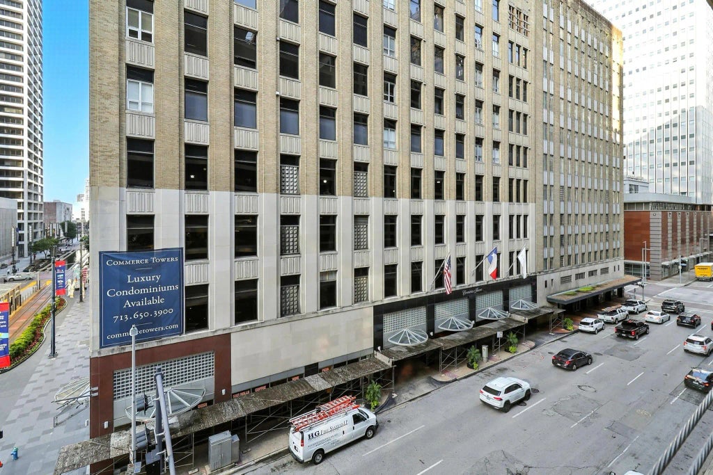 Experience luxury high-rise living in the heart of Downtown Houston at Commerce Towers! This two-bedroom, two-bath condo offers an open-concept living and dining area filled with natural light, a modern kitchen, and generously sized bedrooms. The primary suite boasts a walk-in closet and en-suite bath, while the secondary bedroom is ideal for guests or a home office, with a laundry closet conveniently nearby. Step outside to vibrant Main Street with dining, shopping, entertainment, and MetroRail access just moments away. Commerce Towers’ exceptional amenities include a rooftop resort-style pool and putting green, party and conference rooms, 24-hour concierge, fitness center, and secure parking. Enjoy upscale urban living with unmatched convenience—schedule your private tour today!