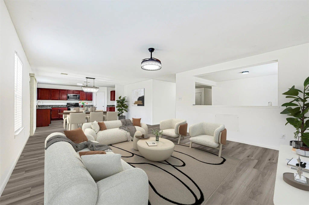NEW LVP FLOORING THROUGHOUT THE HOME! This spacious 3-bedroom, 2-bath home offers both comfort and potential. Versatile den—perfect for a home office or playroom—and a thoughtfully designed kitchen that overlooks the open-concept living area, it's ideal for everyday living and entertaining. Enjoy the privacy of a fully fenced backyard with a covered patio, great for relaxing or hosting guests. Both bathrooms have been tastefully updated, adding modern appeal. Carpet flooring runs throughout the home, offering affordability and a great opportunity to customize to your taste in the future. A great value in a desirable neighborhood—don’t miss your chance to make this home your own!