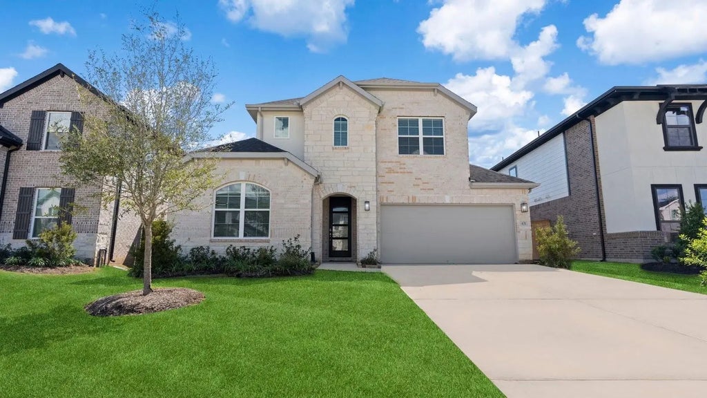 Welcome to the Rockdale Floorplan by D.R Horton, located in the beautiful community of Harvest Green. This plan is a two-story home featuring 4 bedrooms, 3.5 baths, and 2 car garage. The entry opens to a study and guest bedroom with attached bathroom downstairs. The gourmet kitchen includes solid surface countertops, stainless steel appliances and breakfast bar which opens to the family room. The primary suite features an attractive primary bath built with separate tub and shower, dual vanities, water closet and large walk-in closet. A versatile game room greets you at the top of the stairs and opens to two additional bedrooms and bath. The standard rear covered patio is located off the breakfast area. *Images and 3D tour are for illustration only and options may vary from home as built.