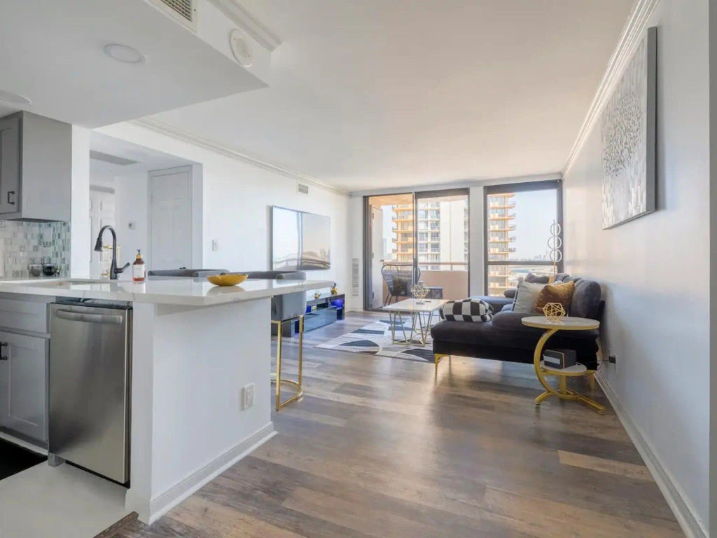 Discover this stunning unit at 3525 Sage! Can be rented fully-furnished, all utilities included except for internet. This 1-bedroom, 1-bathroom condo features a spacious open floorplan that effortlessly combines the living, dining, and kitchen areas for seamless entertaining and everyday living. Enjoy the convenience of a refrigerator, washer, and dryer included with the unit. The galley kitchen boasts granite countertops, a generous breakfast bar, and modern stainless steel appliances. The warm wood-like engineered flooring enhances the inviting atmosphere. Step out onto the balcony to take in views of Williams Tower and the vibrant Galleria area. Recent updates to the building include fantastic amenities such as a resort-style pool with outdoor grills and cabana, a gym, a game room, a library with computer access, concierge services, and a secure parking spot. Ideally located just minutes from The Galleria and a variety of dining options!