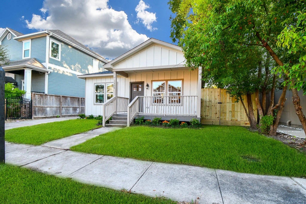 Discover this stunning, fully restored bungalow located in the heart of highly desirable Sunset Height. Designed by Host Home Designs, this 4 bedroom, 3.5 bath custom home blends vintage charm with modern luxury. Inside, you'll find a bright open floor plan, engineered wood floors, quartz countertops, and a custom curved island in the gourmet kitchen. Thoughtful details include a gas fireplace, plastered range hood, arched dry bar, and a butler's pantry, each element curated for timeless appeal. Every finish was hand selected to honor the home's historic roots while ensuring lasting design. This one of a kind property offers rare character, premium craftsmanship, and unbeatable location. Don't miss your chance to own a piece of Houston history, elegantly reimagined for modern living!