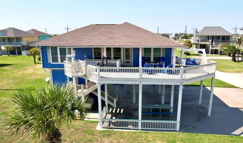 OCEAN VIEWS ! This beautiful home is located in one of the nicest subdivisions on the Bolivar Peninsula. Enjoy fabulous water views from this exceptional property. Some of the latest updates are: tankless water heater, A/C, cargo lift added, and the owners have increased the size of the driveway. This home has been well maintained. Singing Sands has a nice walkway over the dunes, large enough for the golf carts. There is a refreshing subdivision pool, with a yearly charge to the homeowners, if they or their renters want to use the pool. This home will sell furnished and ready to enjoy or to use as a vacation rental.