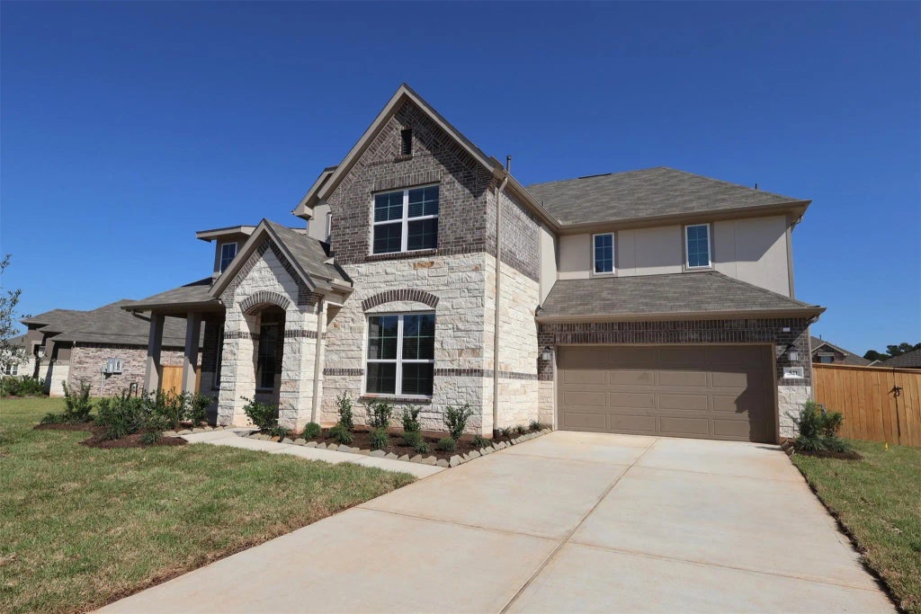 There is a new development in Willis, TX, in the Moran Ranch community! Introducing the Salado plan! This 3884-square-foot home sits on a half-acre and has 5 bedrooms and 4.5 baths. As you enter through the open foyer, you see a bedroom and a study. The home's design is an open-concept dining room, kitchen, breakfast area, and family room, with a fireplace and ceilings opening to the second floor. Enter your owner's suite through a private entry from the family room. The large owner's bedroom features beautiful, sloped ceilings and a bay window for extra space and plenty of natural light. Through the double doors in the bedroom, enter your private bathroom retreat, complete with an impressive walk-in closet, a soaking tub, and a walk-in shower. Upstairs, you will find an open view into the family room, a spacious game room, 2 full bathrooms, and 3 additional bedrooms— Head outside to your covered extended patio, perfect for outdoor entertaining. Contact us to learn more!