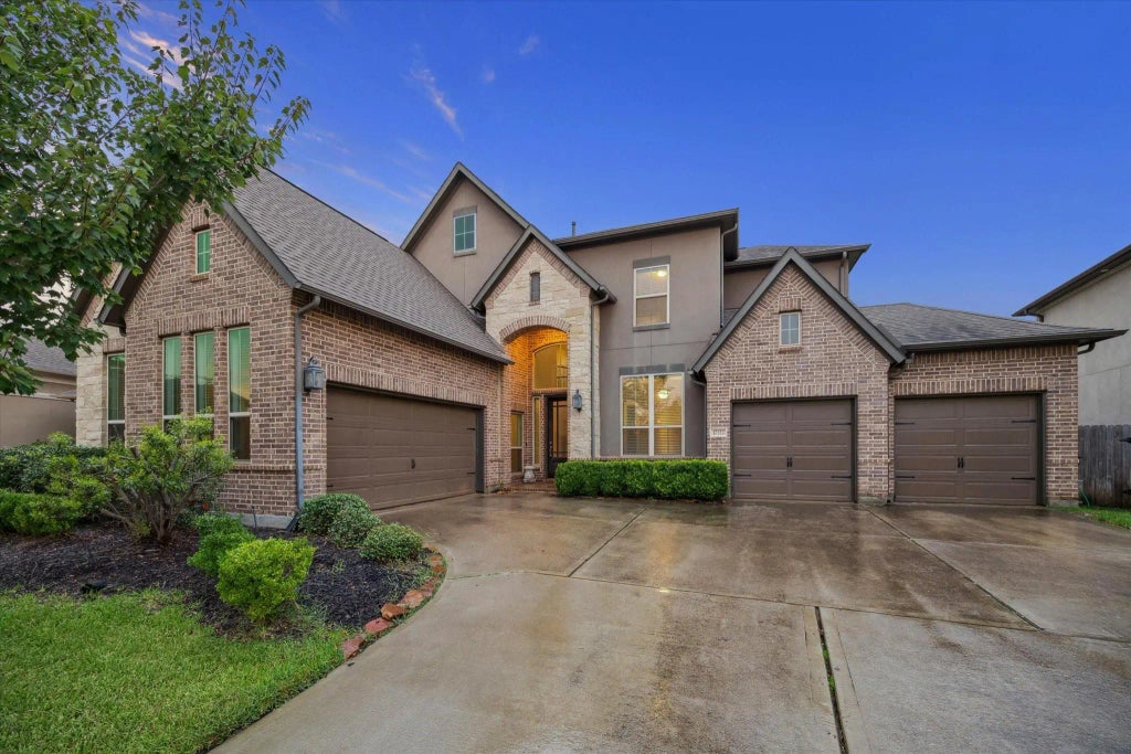 This beautiful home offers 4 bedrooms (2 down), a 4-car split garage, and many upgrades throughout. Enjoy Silestone quartz countertops, a curved staircase, hardwood flooring, and covered front & back patios. The spacious layout features a dedicated study, game room, media room, and a luxurious primary suite with bay windows and designer tile. All in a prime location across from Klein High School.