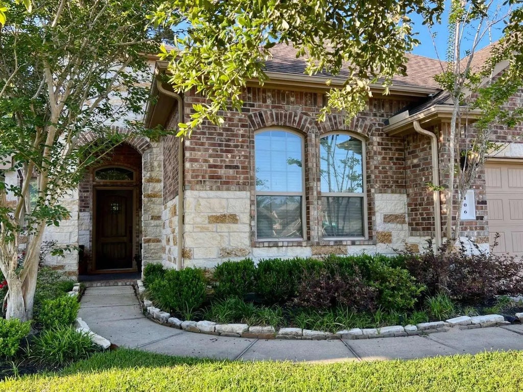 Welcome to 106 Deerfield Meadow Dr—a beautifully maintained 4-bed, 2-bath single-story home with fresh paint, updated fixtures, and abundant natural light. The spacious layout includes a formal dining, large breakfast area, and an island kitchen with granite counters, ample storage, and wood/tile floors. Refrigerator, washer, and dryer are included. The oversized covered brick back patio is ideal for entertaining with space for an 8-seat dining table, sectional, and a gas hookup. The serene primary suite features a tall double vanity, soaking tub, and separate shower; secondary bath also offers a double vanity. Additional highlights: covered front porch, sprinkler system, 2-car garage with auto opener, and quiet backyard privacy with no visible neighbors. Zoned to The Woodlands schools and minutes from shopping, dining, and I-45. Move-in ready and full of thoughtful upgrades!