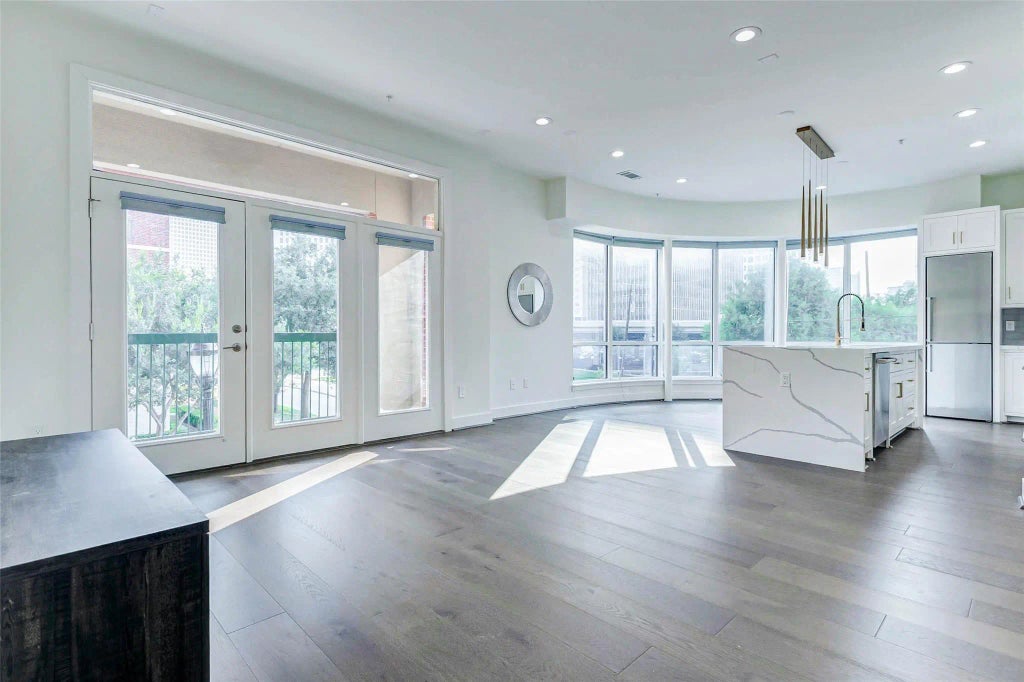 Experience elevated living in this fully remodeled corner unit featuring a unique double balcony with breathtaking downtown views! Taken down to the studs in 2022, this home boasts all-new walls, flooring, finishes, and custom millwork for a modern, luxurious feel. The kitchen showcases quartz countertops, stainless appliances—including dishwasher, microwave, oven, and contemporary fixtures from Ferguson. No detail was overlooked: all plumbing, lighting, and hardware were tastefully updated to stylish, modern sensibility. Throughout the unit, enjoy engineered wood and tile flooring with no carpet anywhere. The spa-like primary bath features a stunning walk-in shower with floor-to-ceiling tile and an expansive glass wall. A private ensuite bath complements the secondary bedroom. Community amenities include a lounge with kitchen, private gym, movie theater, and storage lockers. Perfectly located just minutes from downtown attractions and walking distance to restaurants, shops, and parks!