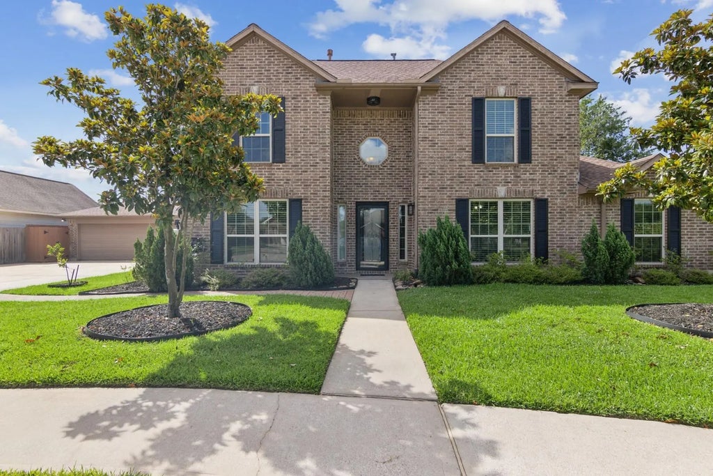 Discover this charming 2-story traditional home with a spacious kitchen, boasting no carpeting throughout. Enjoy the covered patio/sunroom with brick flooring and sliding glass doors for ample natural light. The dreamy kitchen features plenty of cabinets, counters, and a walk-in pantry. With a 3-car garage and built-in cabinets, this property is a true gem. Situated on a cul-de-sac lot, the home offers 5 bedrooms, 4 bathrooms, and a versatile study that can double as a dining room. Walking distance to horse stables, with convenient access to shopping and dining. Hurricane rated windows, dog run, recessed lighting, water softener, tankless water heater, fence replaced in 2023, AC replaced in 2021. Sellers also added beautiful landscaping, enclosed the patio and updated the secondary bathroom counter tops. Minutes from highly rated Pearland ISD schools, 3 private schools, one charter school and a special needs school. So many option for education.