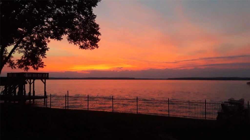 Click Virtual Tour Link Above to see Breathtaking Open Water Views in Gated Neighborhood! Where every day feels like a vacation with sweeping lake views from nearly every room. Beautifully designed, custom home features a dramatic 2-story entry & family room, soaring ceilings & walls of windows that flood the open-concept kitchen, living & dining areas with natural light. The main floor offers 2 BRs & 2 full baths, including spacious primary suite with jetted tub & dual closets. Upstairs provides 3rd BR, full bath, game room with kitchenette & screened-in balcony overlooking the lake. Entertain with ease thanks to a full outdoor kitchen, expansive covered patio & a private dock (4 lifts, enclosed storage) & new 90’ bulkhead. 2.5-car garage boasts designer epoxy floors & workshop. Fully fenced yard with plenty of grass for pets & play. Just steps from neighborhood pool, grill, swings & courts – nearby neighborhood private boat ramp. A perfect blend of comfort & indulgence …everyday!