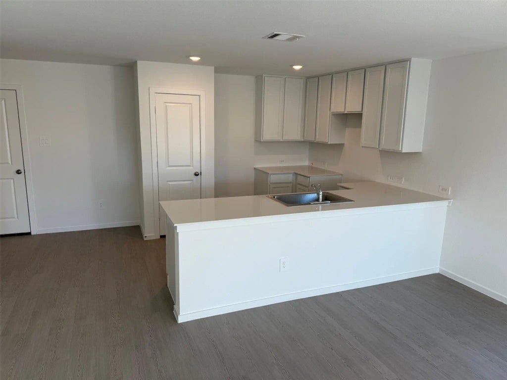 This lovely single-level home showcases a spacious open floorplan shared between the kitchen, dining area and family room for easy entertaining during gatherings. An owner’s suite enjoys a private location in a rear corner of the home, complemented by an en-suite bathroom and walk-in closet. There are two secondary bedrooms along the side of the home, which are ideal for household members and hosting overnight guests.