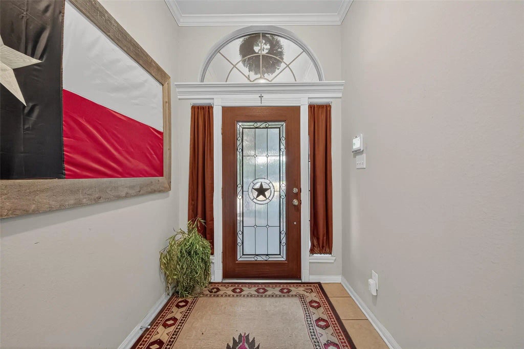 Beautifully maintained 1-story brick and stone home offering 3 spacious bedrooms, 2 baths, and an oversized garage on a large lot with no back neighbors and two expansive side yards. Inside, vaulted ceilings, elegant archways, and wood-look flooring create a warm, open feel. The step-saver kitchen features abundant cabinetry, granite countertops, gas stove, reverse osmosis, and a bright breakfast area. The 19x14 family room boasts a wall of windows, crown molding, and a double gas log fireplace shared with the 15x10 formal dining room. The primary suite includes a bay window, high ceilings, and a luxurious bath with his-and-her marble vanities, a large walk-in shower, soaking tub, and an impressive 12x9 walk-in closet. Additional features include a built-in Taexx pest control system and landscaped backyard with covered patio and BBQ area—perfect for entertaining. Located minutes from Houston National Golf Course, community recreation center, and within Cypress-Fairbanks ISD.