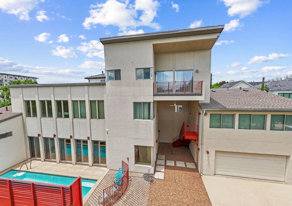 This Montrose gem was 1 of 6 homes chosen by the American Institute of Architecture to participate in its year 2000 tour.You'll find out why when you enter this open concept beauty that gives the appearance of a one story bungalow,which defined living in the area at that time but is actually multi-leveled!Created by renowned architect Natalye Appel, this home does not veer too far from its Mediterranean roots with symmetrical features and an appreciation for the natural environment. The tiered levels and open spacing give rise to a "tree house" experience in the 3rd level primary suite offering spectacular views. This home boasts tons of natural light enhanced by the hard wood flooring throughout and a stunning kitchen located in the rear of the home. There is a dedicated library on the 1st floor, as well as an office/workspace on the 2nd floor.The double car garage features an upstairs office/workspace/full bath and the lap pool is located unobtrusively on the side of the home.