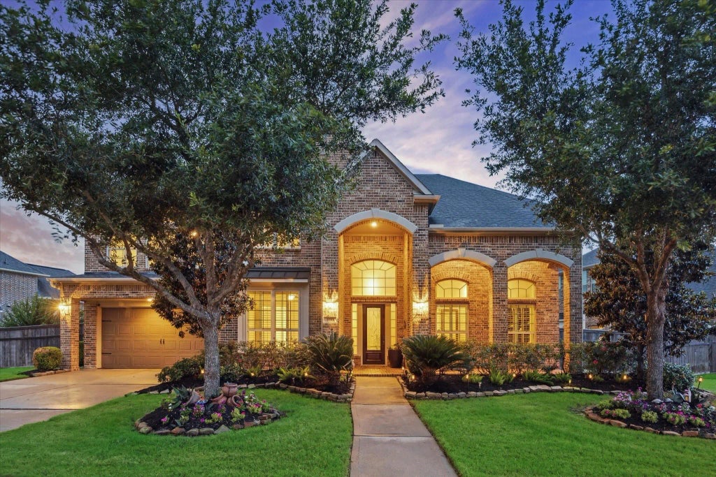 Tucked inside the desirable community of Cross Creek Ranch, this east facing Napoli plan offers resort-style living w/ a private backyard oasis. Designed for entertaining & everyday luxury the home boasts 5 beds (2 down), 4.5 baths, game room, Theatre style media room, elegant study w/custom built-ins, formal dining w/ adjoining butler's pantry, wine grotto, custom shutters, water filtration system & nearly 5,000 SF of refined space. The chef’s kitchen is upgraded w/ Jenn Air 6 burner gas cooktop, granite counters, designer backsplash, under cabinet lighting & very large walk in pantry. The luxe primary suite features triple tray ceilings, dual closets w/custom built ins & a spa-worthy bath w/ dual spout shower, large soaking tub & vanity. Escape to the breathtaking outdoor retreat w/ heated pool & spa, gas fire bowls, extended patio w/ outdoor kitchen surrounded by lush landscaping, towering palm trees & vibrant plant life all set on an oversized lot. Zoned to top-rated KISD schools.