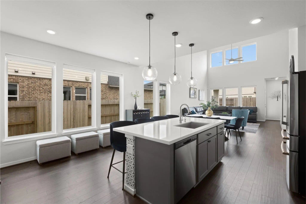 Welcome to 8814 Riverton Ridge Rd, where thoughtful design meets everyday comfort in Avalon at Cypress. The moment you enter, soaring ceilings, rich engineered wood floors, and oversized windows become a centerpiece, bathing each room in natural light, elevating the entire home with warmth. The kitchen is the heart of the home—complete with quartz counters, stainless steel appliances, walk-in pantry, and an island built for gathering. The main-floor primary suite offers a quiet escape with a large shower, dual vanities, and a generous closet. A secondary bedroom and full bath downstairs offer flexibility for guests or multi-gen living. Upstairs, a spacious game room, two bedrooms, dual vanity bath, and multiple storage closets add function and flow. Step outside to a covered patio and landscaped yard with a full sprinkler system—perfect for relaxing or entertaining. Zoned to top-rated Cy-Fair schools, and minutes from Hwy 99, dining, and shopping. Schedule a private showing today!