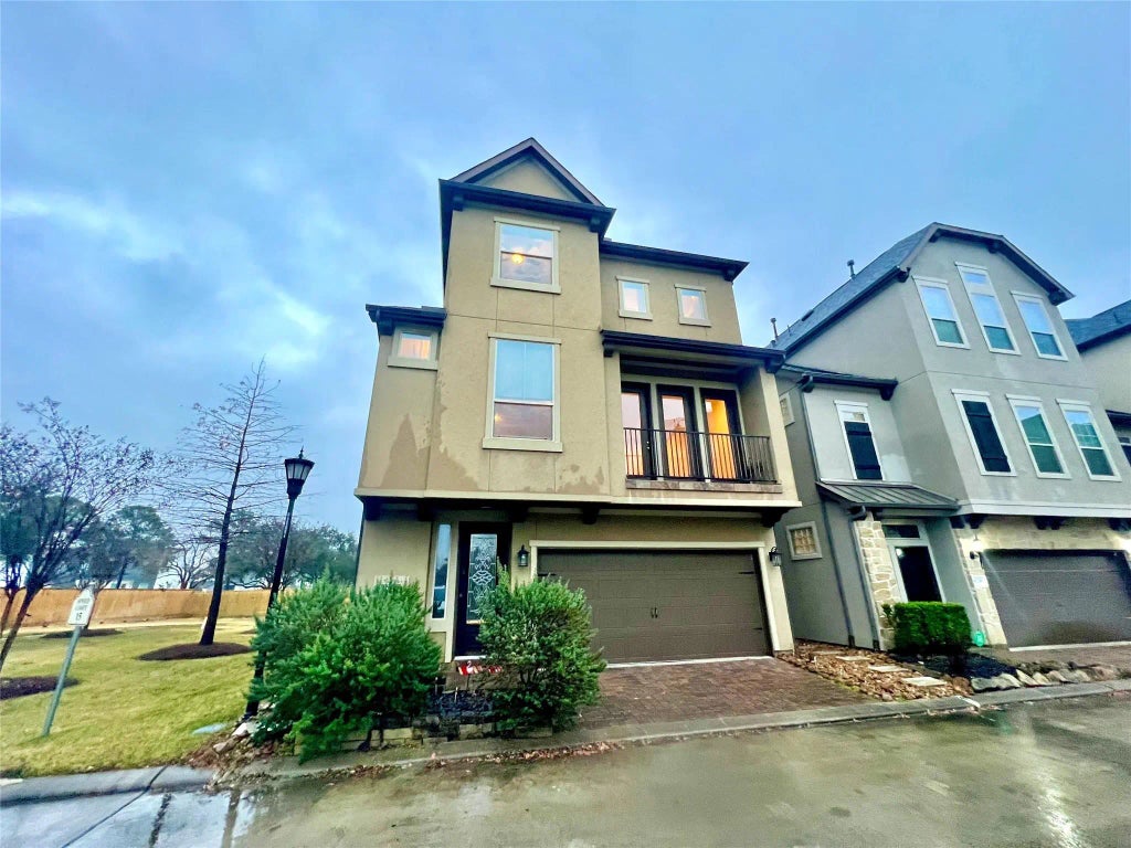 This home is located in a small, gated community, with extra privacy with no one behind or to the left. Features include, neutral light paint tones, designer lighting, crown molding, wood cabinetry, and wood flooring. The private guest suite/office and full bathroom with walk in shower in on the first floor with a door to the back yard. The second floor offers a large living/ dining area open to kitchen & half bath. On the third floor is the primary suite with an oversized walk-in closet with built-ins, a frameless glass shower, & two large vanities separated by a jetted tub. Step outside onto the large tiled patio to enjoy relaxing or entertaining. Concrete pathways wind through the neighborhood, where neighbors can be seen strolling with pets or exercising. Quick access to Beltway 8, Highway 290, and I-10, this home offers security, tranquility, and convenience. SELLER WILL BUY DOWN INTEREST RATE WITH ACCEPTABLE OFFER.