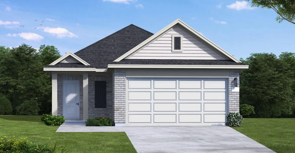 This thoughtfully designed one-story home offers 1,532 sq. ft. of modern living with 3 bedrooms, 2 bathrooms, and over $32,000 in premium upgrades — all in a master-planned community with serene surroundings and easy access to I-45. From the curb, you'll notice the striking Elevation C2, enhanced with Binsa-Smokey brick, Aspen Blend chopped stone, and an elegant 8-foot fiberglass front door with 4-lite clear glass. Inside, the Interior Package 3C.2 brings high-end finishes into every space, including Madison Marvel cabinetry, Omegastone Splendid kitchen countertops, Marlana Echo bath surfaces, and designer tile from Solara and Cuidad collections. The Omni Picket Mosaic backsplash, Bell Canyon luxury vinyl plank flooring, and Agreeable Gray walls with Extra White trim create a clean, sophisticated aesthetic throughout.