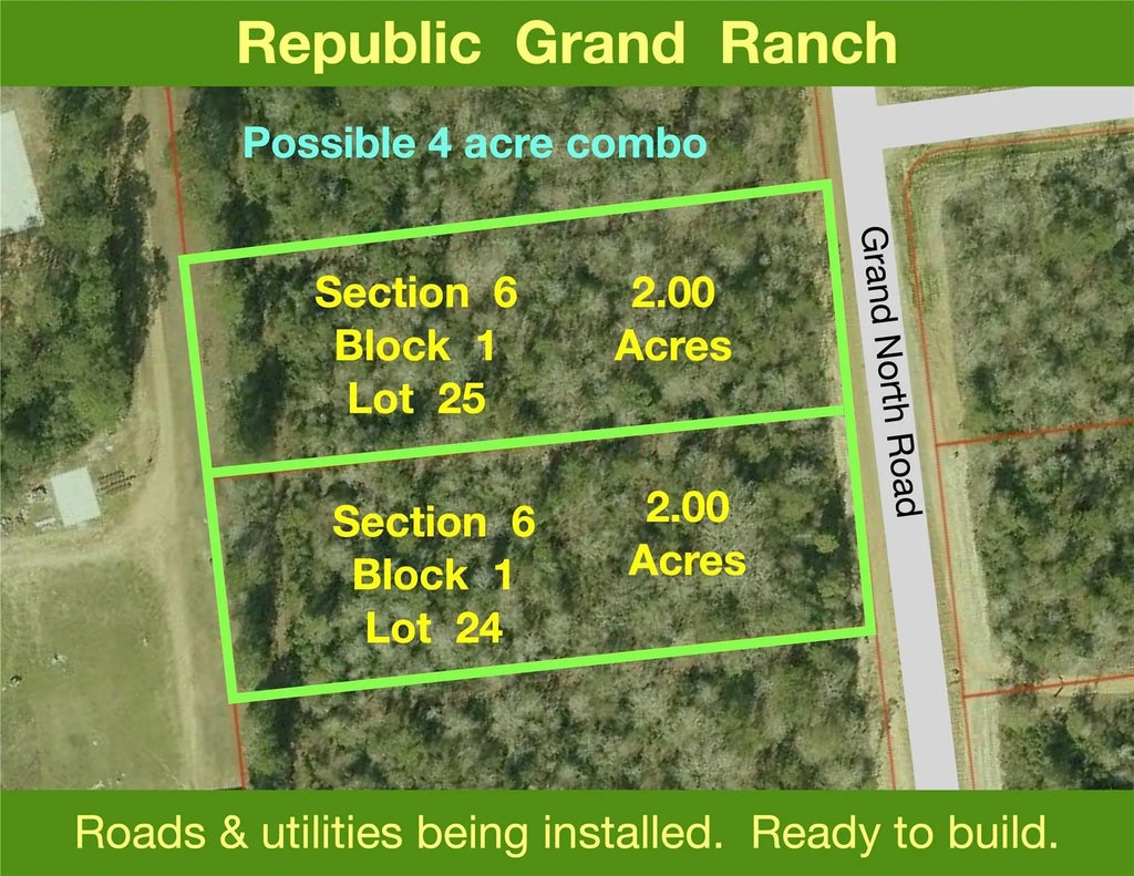 2.00 ACRES > MATURE TREES WITH HARDWOODS > LEVEL FOR EASY BUILDING > READY TO BUILD > UTILITIES ARE AVAILABLE >MAY COMBINE WITH 6-1-24 > Located on the outskirts of Willis with great schools and nearby shopping. Large lot wooded community with gentle rolling hills. Peaceful privacy. You will never be crowded by neighbors. Republic Grand Ranch is a large lot, wooded community in the rolling hills. Country lifestyle for your custom forever home. Trees, paved roads, water, HIGH SPEED fiber optic internet & underground power through out. Covered pavilions, parks, ponds, playgrounds, BBQ areas. Minutes from shopping, dining, schools, hospitals, and entertainment. Low taxes - No MUD tax. Average elevation is 400’ ASL. Plenty of greenspace and trails for hiking, biking and horseback riding.