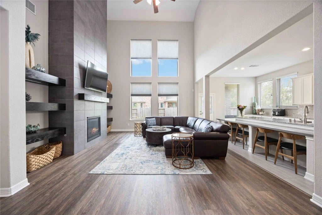 This beautifully updated 4-bedroom, 3.5-bathroom home on a corner lot offers 3,640 sq. ft. of living space and a functional, entertainment-ready floor plan. The downstairs features a spacious primary suite with a bump-out sitting area, walk-in shower, dual vanities, and soaking tub. Enjoy a formal dining room, private office, butler pass-through, and newly updated floors. Upstairs, find three bedrooms, a fully renovated bath with dual sinks, plus a large game room and media room. The covered patio and 2-car garage round out this versatile property designed for comfort and gatherings.