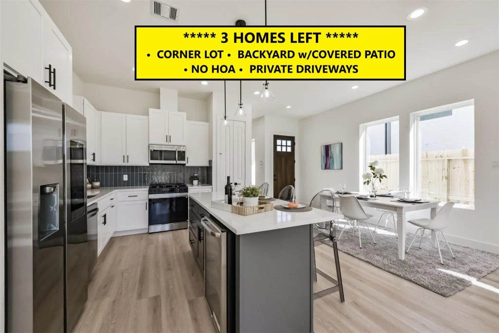 Corner Lot with Backyard and Covered Patio! ONLY 3 HOMES LEFT! Welcome to Roslyn Place, offering modern designs with thoughtful details. Choose from three floorplans, each with 3 bedrooms and 3.5 bathrooms, perfect for today’s lifestyle. Entryway and living room feature high ceilings, with 10ft ceilings on the first floor for an open, airy feel. Kitchen is a chef’s dream, with quartz countertops, a spacious walk-in pantry, and a large breakfast bar ideal for entertaining. Upstairs Primary Suite boasts a large walk-in closet, luxurious bath w/soaking tub & separate glass shower. Versatile office/study or extra living space adds convenience. Spacious secondary bedrooms, each with walk-in closets and private full baths. Enjoy backyard, perfect for relaxing or entertaining, w/room for your dream pool. Located in Oak Forest/Heights area, these homes are close to top dining, shopping, parks & entertainment, exciting new development nearby. LOW Taxes & No HOA!