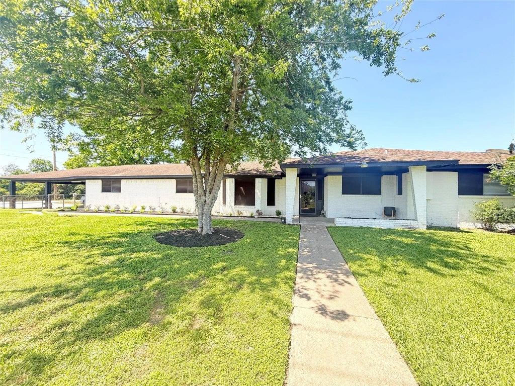 Charming one story 4 bedroom 2 Full bath brick home on a large corner lot, NO Restrictions, LOW Tax Rate, and Remodeled. This home offers a great open floor plan with modern touches. Makes a perfect home to entertain. . Custom cabinetry and mud area, decorative paneling on the walls, and modern light fixtures. Island kitchen with butcher block countertops, custom cabinetry, stainless steel appliances, refrigerator included. Oversized dining area that floors into bother the kitchen and living area. This home has 4 spacious bedrooms and a large additional flex space making a great family room, play room, office, or room of your choice. New fence installed and bunco around the mature towering live oak tree. Home is fully fenced with additional carport parking in addition to the attached 2 car garage with export flooring. Lots of space in front and back of the home, plenty of room for garden or chicken coop, horses allowed.