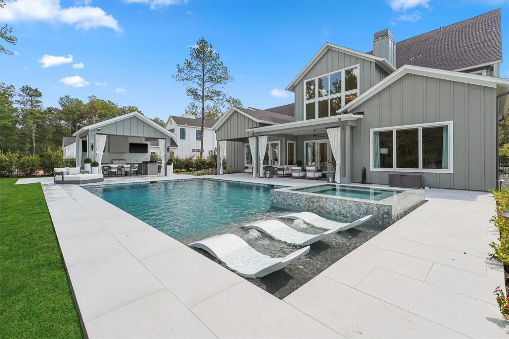 Incredible Opportunity! Spectacular Hamptons-inspired home by TIPLER Design and Build in the luxury, gated golf community of Pine Island at Woodforest! This is the private residence of the builder that has been upgraded with stunning finishes and beautiful details throughout. The backyard features Your Very Own Oasis with a pool, hot tub, Cabana & Summer Kitchen! Every detail has been paid attention too. Located in the award-winning master planned community, this unique custom design will feature soaring ceilings throughout, hardwood floors, gourmet appliances, custom designed lighting, an expansive outdoor covered patio. 4 bedrooms all with their own private baths, feature custom detailing & tremendous natural light. Those select features, along with a host of community-wide amenities throughout Woodforest make this a complete home & destination for years to come! Minutes from shopping and new restaurants! Short Golf Cart ride to Golf Club & Dining. GOLF CART FRIENDLY NEIGHBORHOOD!