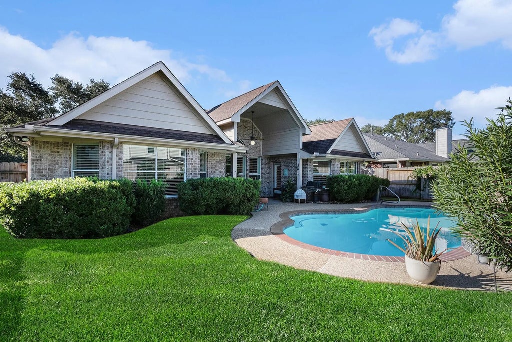 How many boxes can you check off with just one house??? Cinco, 1 story, pool, covered patio, 4 beds, open plan (photographer provided floor plan online), high ceilings, well cared for... But let me go on! Great location (backs to other Cinco HOUSES, not apartments/commercial/street), 4 sides brick, recent interior paint, pool refinished (within 12 months), ceiling fans everywhere, lots of closet space (including linen), 2 attic accesses, gas log fireplace. Plus there's lots of extra features you probably don't even know how much you'll appreciate like rain head shower in master, pool stairs have a hand rail, fence replaced last 12 months (ALL neighbors shared in cost!), large island in kitchen (WITH plugs which you know code doesn't allow anymore), his & her medicine cabinets in master bath, 2 doorways to pool, 7 year old roof. You also get lower tax rate, award winning schools and amazing neighbors!