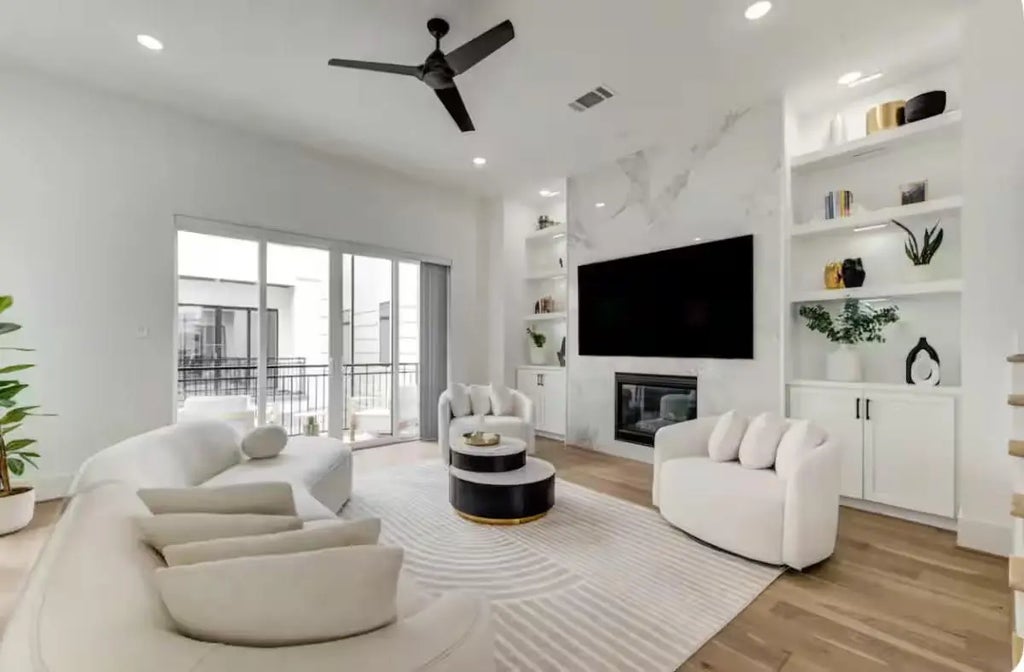 READY TO MOVE IN ...INCLUDES ELEVATOR AND REFRIGERATOR. Luxurious built 2023, 4 story single family homes with rooftop terrace in Galleria area walking distance to Houston's premier shopping, entertainment and eateries. Gated driveway. 1 Bedroom down could be home office or guest bedroom, living room and kitchen second floor, primary bedroom and 3rd bedroom on the 3rd floor, rooftop terrace on the forth floor. Gas fireplace, quartz countertops, outstanding engineered wood all around the house, no carpet.