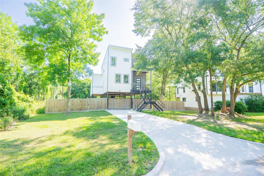 Modern living surrounded by nature in this stunning 3-bed, 3.5-bath contemporary home. Nestled among trees with a spacious backyard, this thoughtfully designed home blends luxury and comfort with sleek, open-concept living. Enjoy soaring ceilings with exposed beams, recessed lighting, and 8-ft doors throughout. The kitchen is a chef’s dream featuring a gas range, wine cooler, and large island that flows into the dining area and out to a balcony-perfect for entertaining or quiet evenings outdoors. Each bedroom includes ceiling fans for comfort, all bathrooms are tastefully finished, including a convenient guest half-bath. Step outside to your backyard retreat, complete with a fully equipped outdoor kitchen and built-in gas grill—ideal for gatherings or relaxed weekend cookouts. This home offers the perfect balance of contemporary design & quality finishes everything you need for elevated everyday living.