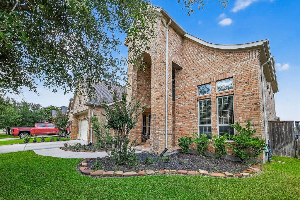 This elegant two-story home offers 5 bedrooms, 5.1 bathrooms, media and game room, thoughtfully designed with high-end upgrades throughout. The first floor showcases a private office, a luxurious primary suite, and a secondary bedroom with its own full bath, perfect for guests. The gourmet kitchen features 42-inch rich espresso cabinetry with elegant under-cabinet lighting, granite countertops, and an open layout ideal for entertaining. Soaring ceilings and abundant natural light define the spacious living area, highlighted by a striking wrought-iron staircase. Upstairs, you'll find three additional bedrooms and a versatile game/media room. Outdoors, you can enjoy a true entertainer's retreat with a covered patio. HVAC Aug 2023 (for downstairs) and 2025 (for upstairs) New Carpet Aug 2025 - Primary BR, Stairs, Upstairs Hallway, and Game room Microwave 2024 Dishwasher Dec 2023 Roof 2015 Water Heater 2015