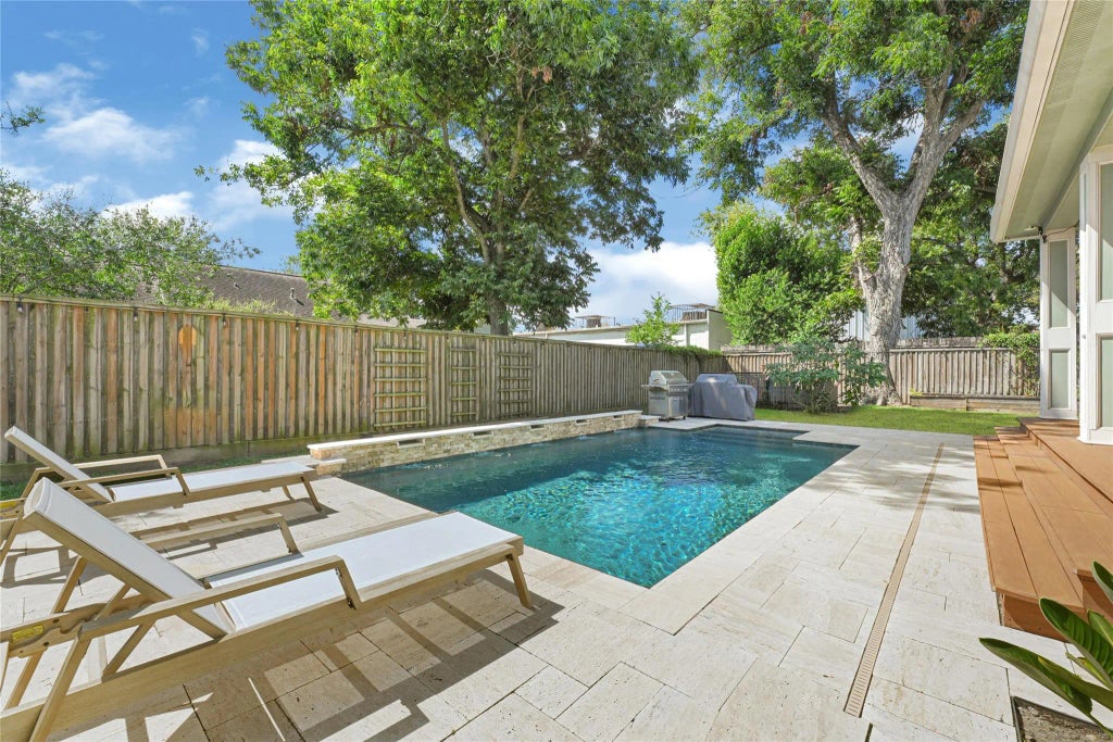 This exquisitely restored bungalow blends classic charm with modern elegance on a 73-foot-wide lot. Originally built in 1939 and fully renovated in 2018, updates were made to plumbing, electrical wiring, and roof joints. This 3-bedroom home with open floor plan and 10ft ceilings, exudes comfort and sophistication.The bright kitchen features ceiling-height cabinets, under-mount lighting, and a soothing neutral palette. The current office space can easily convert back to a third bedroom, offering flexibility. The primary bedroom offers stunning views and direct access to the outdoor oasis, featuring a saltwater pool, covered patios, and lush greenery—perfect for relaxation or entertaining. A whole-house generator provides year-round peace of mind. With its timeless design, turnkey updates, and resort-style outdoor living, this property is a rare find. Conveniently located in the heart of Lindale Park with easy access to the Heights and Downtown. The home includes refrigerator and W/D.