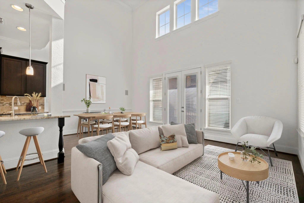 Welcome to this beautifully appointed Heights area home boasting a NEW AC SYSTEM INSTALLED IN 2024, BRAND NEW INTERIOR PAINT & FULLY TURFED BACKYARD, providing a low-maintenance outdoor retreat! HOA fees include water, trash and recycling! This like-new 3-story residence offers an ideal blend of modern comfort and timeless style, with 3 generously sized bedrooms, 3.5 baths, & a versatile game room on the top floor. Thoughtfully designed, this home features a first-floor bedroom with a full bath—perfect for guests or a quiet home office. The second level hosts the expansive primary suite, highlighted by a barreled ceiling in the spa-inspired bathroom, along with an open-concept living and dining area flooded with natural light from soaring two-story ceilings. On the third floor, a private bedroom and game room offer flexible living space ideal for entertaining or relaxation.