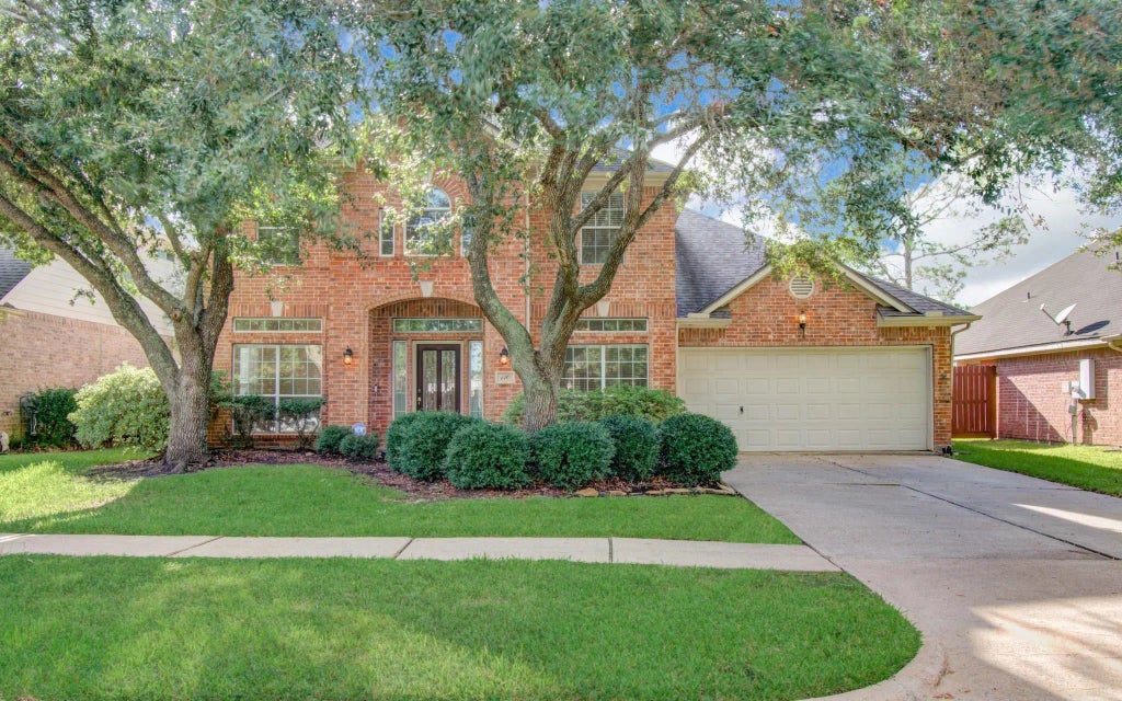 Located in a quiet Greenridge subdivision, this beautiful home offers comfort, space, and great features. Mature trees add curb appeal. Inside, the entry boasts 18' ceilings through a beautiful lead glass front door. Private study with French doors is to your right and formal dinning to your left. The family room has a cozy fireplace, and the light-filled kitchen includes plenty of cabinets, lots of counter space, double ovens, and a vented microwave. The breakfast nook also has a built-in workspace. The large primary suite includes an updated bathroom with double sinks, a tub, separate shower, and walk-in closet with built in shelves. Upstairs, you’ll find a spacious game room, three big bedrooms, and two full bathrooms. Out back, enjoy a generous yard with a gate that leads directly to the neighborhood playground. No back neighbors, low taxes, and solar panels save you on energy! Bay Area Christian School & acclaimed Clear Springs HS is within 4 mins. Newer roof and NEVER FLOODED!