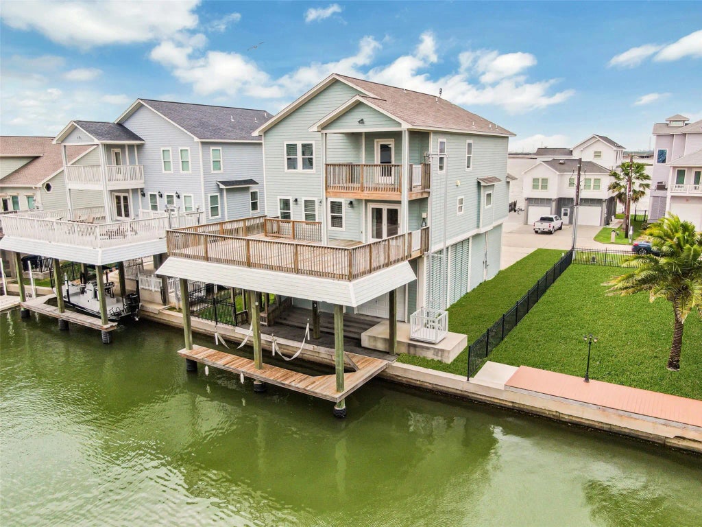 This large Tiki home has 5 bedrooms with private baths in each. Large great room that is open to kitchen dining area, 1/2 bath & utility room located on main floor right off living area. Two bedrooms with baths located on main floor, 3 bedrooms with baths located on upper floor. Cargo lift to all floors, views of Jones Bay, easy access to the Intracoastal, over size garage could have a great mancave or entertaining area. Ready for the summer time & room for the whole family. Make your appointment today.