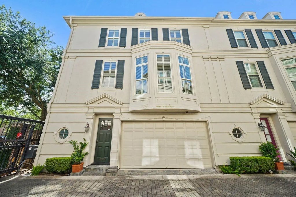 Beautiful Lovett Home in gated community. The home offers 3 bedrooms and 3 1/2 bathrooms. Beautiful wood floors flow throughout home. The first floor has a nice sized bedroom with full bath that could be a study. It has been updated with tile floors. The 2nd floor living and dining areas have high ceilings and a gas fireplace. The island kitchen opens to the family room and is complete with granite countertops, gas cook top, Bosch dishwasher, and lots of cabinet and counter space. The Formal dining is a great place to entertain your guests. The primary suite offers high ceilings with a luxurious ensuite that has his and her walk-in closets, Whirlpool tub, walk in shower and double sinks. The 3rd bedroom with full bath is also on the 3rd floor. The home has lots of closets for great storage. Beautiful Plantation shutters are throughout the home. A/C's replaced in 2024. Windows replaced with Windsor Next generation Vinyl 2022. Fabulous location minutes to Med Center.