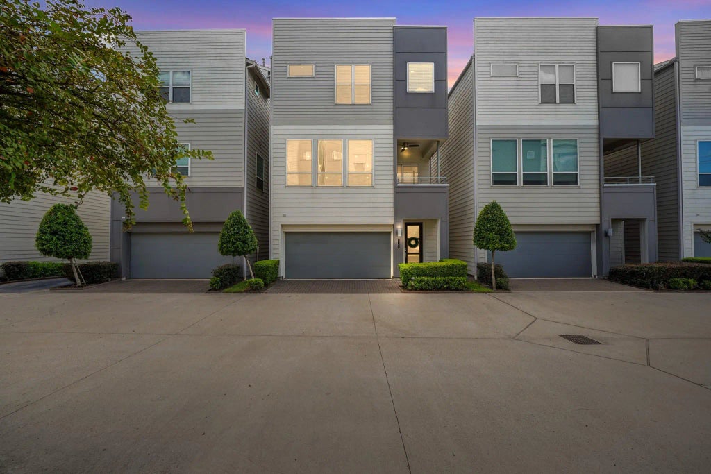 Located in the heart of EaDo just minutes from Downtown and major freeways, this stunning three-story home in a gated community offers a modern, well-designed floor plan near vibrant dining and shopping destinations. The tiled entry leads to a first floor bedroom with ensuite bath and garage access. Second floor open concept includes dining and family room with hardwoods, high ceilings, recessed lighting with nearby half bath and covered balcony. Island kitchen has breakfast bar with accent tile, pendant lighting, Quartz counters with wood tile back splash, Shaker cabinets, S/S appliances including a 5-burner gas range, wine fridge & refrigerator stays. Primary suite has sitting area and bath has an oversized walk-in shower, dual sinks with Quartz counter and a spacious walk-in closet. Upstairs secondary bedroom has an ensuite bath and nearby laundry room includes a Samsung washer/dryer. Home also has a pet suite with access to the backyard with paver patio and wrought iron fence.