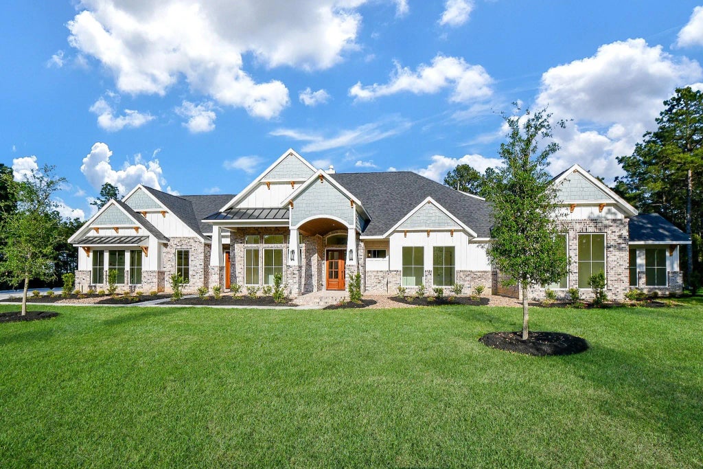 This modern craftsman home perfectly blends with contemporary design. Nestled on a 1.5-acre tree-lined cul-de-sac lot, it offers ample space for entertaining and family fun while ensuring privacy. A vaulted ceiling with stained beams flows from the open family room, featuring a wood-burning fireplace, onto a rear covered patio. Engineered wood floors grace the main living areas and primary suite, complemented by craftsman trim details throughout. The gourmet kitchen boasts high-end appliances, a spacious pantry with floating shelves, and a cozy morning porch for coffee. The private primary suite includes a dual vanity bath, a freestanding tub, a walk-around shower, and dual closets. Each bedroom has an en-suite bath, and the study provides a comfortable workspace. The game room, equipped with a wet bar and fridge, opens to the expansive covered patio, perfect for gatherings. Versatile and stylish, this home offers ideal spaces for both work and play.