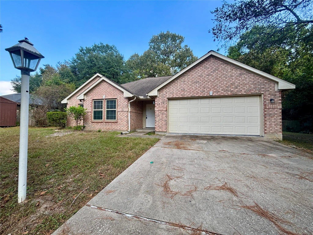 WELCOME HOME TO THIS PRETTY 3/2/2 LESS THAN ONE MILE FROM I45! THIS HOME OFFERS A HUGE LIVING ROOM W/VAULTED CEILING, SPACIOUS KITCHEN W/AMPLE CABINET SPACE + FRIDGE, ROOMY FORMAL DINING ROOM + BREAKFAST AREA, SPLIT BEDROOM FLOORPLAN, LARGE PRIMARY BEDROOM, PRIMARY BATH WITH DOUBLE SINKS + DUAL CLOSETS, AMPLE SIZED SPARE BEDROOMS, COZY SUNROOM OFF BACK, LARGE PRIVACY FENCED BACKYARD! HOME HAS NEVER FLOODED!