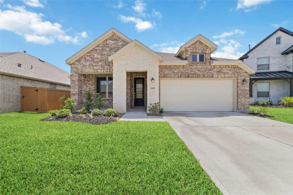 Welcome to this stunning one-story home in the premier masterplanned community of Balmoral. This like-new home offers both elegance and comfort in a vibrant community. Step inside to find luxury vinyl plank flooring flowing seamlessly throughout the open-concept main areas. The island kitchen boasts gleaming quartz countertops, providing both beauty and functionality. Natural light pours in through large windows, highlighting the spacious living and dining areas. Outside, enjoy the tranquility of front and back porches, perfect for morning coffee or evening relaxation. The stone front elevation adds a touch of sophistication and curb appeal. As a resident of Balmoral, you'll have access to world class amenities, like Texas' first Crystal Clear Lagoon with white-sand beaches, a resort-style infinity pool, fitness center, and miles of walking trails. Enjoy tennis and basketball courts, plus a clubhouse, splash pad, and playgrounds. Why buy a place to live, when you can buy a lifestyle?
