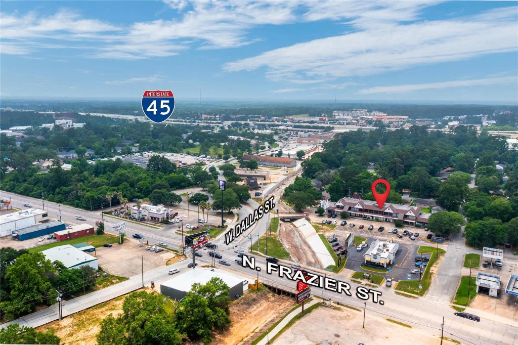 Prime first-floor commercial office condominium now available for lease in Downtown Conroe. This property is strategically positioned just off North Frazier Street, offering excellent visibility and convenient access to I-45. Located within an established community surrounded by thriving commercial and retail activity, it provides a strong foundation for a variety of business types. The versatile floor plan includes a welcoming lobby, a break room with kitchenette, a bathroom, two private offices or flex spaces, and an oversized back room that can easily be converted into additional offices/workspace. The space is currently vacant and ready for customization, with carpets already removed, allowing for immediate improvements to suit your business needs.