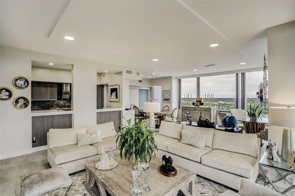 Fully renovated 2/2 corner residence with Italian tile floors, recessed lighting and neutral tones. Spacious living areas will accommodate a variety of seating areas and large scale furniture, a great space to have an extended dining area. Kitchen with custom cabinetry, Bosch stainless appliances and Quartz counters. Breakfast room with a walk-in storage closet. Primary suite with walk-in closet, bathroom with double sinks and tub/shower with seamless glass. Guest bedroom with recessed glass display shelves. Second bathroom with large walk-in shower. Large corner balcony with 15th floor panoramic sunset views overlooking the galleria skyline. Full service high rise living with doorman, valet, porter, 24 hour security and heated pool. Convenient location within close proximity to great shopping, restaurants, the Texas Medical Center, Downtown and the Galleria.