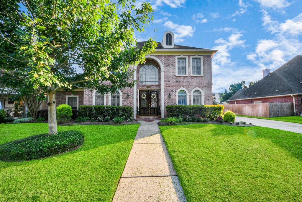 Welcome to this elegant two-story home in Pecan Grove. Step inside to a warm wood-floor entry flanked by a private study & formal dining, leading into a spacious family room with built-ins and a cozy fireplace. The gourmet kitchen offers abundant cabinetry, generous counter space, & flows seamlessly into the living and entertaining areas. A wet bar adds convenience, doubling as a serving station. Upstairs, discover a massive game room, a guest suite with private bath, and two additional bedrooms with a connecting bath. 4 bedrooms, 3.5 baths. Abundant storage—including a coveted Texas basement that can be finished into a garage apartment. A lush backyard invites relaxation by the sparkling swimming pool. The detached garage with porte-cochère adds function. Extra highlights include crown molding, plantation shutters, window seat, natural light throughout & timeless details that set this home apart. Make your holiday memories in Pecan Grove—this is a lifestyle you will treasure.