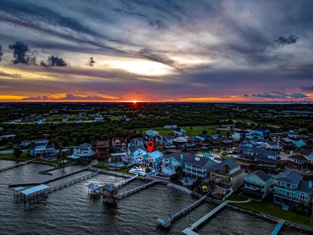 Bayfront Bliss! This stunning coastal retreat will have buyers dreaming of waterfront living the moment they walk in. Soaring ceilings and walls of glass frame panoramic Bay views, while the open-concept island kitchen and family room invite easy entertaining. Step outside to your private boathouse with lift, jet-ski hook-up, and pier with a breezy palapa—ideal for sunsets or fishing. Lounge by the newly built in-ground pool and spa or dine al fresco under the expansive covered patio. The luxurious primary suite is a sanctuary with its own private deck, spa-like bath with soaking tub, double vanity, and separate shower. Abundant updates, massive outdoor living space, and rare dual water views (bay + canal) make this home a showstopper. Coastal living has never looked so good!