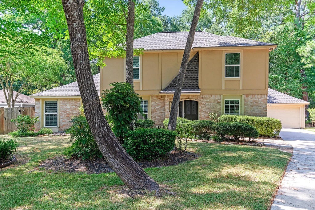 Tucked Away Treasure with Room to Roam! Discover this hidden 4/2 gem nestled in the woods—a peaceful retreat with space, style, and versatility. The primary suite is conveniently located downstairs, while three spacious bedrooms and a full bath await upstairs, each offering generous closet space. Step into a welcoming shiplap-accented entryway and living room, complete with a cozy fireplace with gas logs and a stylish inset bar area—perfect for entertaining. The dining room sits at the front of the home, while the living and breakfast areas overlook a covered back patio, ideal for morning coffee or evening gatherings. Enjoy the fully fenced backyard with no rear neighbors, offering privacy and tranquility. The converted garage adds even more flexibility, serving as a game room, fitness space, or entertainment hub. This home blends rustic charm with modern comfort. This owner does not accept Section 8! No smoking!