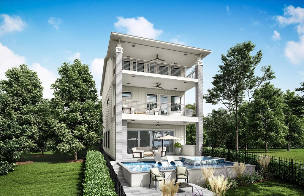 Lakefront luxury living at its very finest. Contemporary and stylish, this waterfront 3-story home (elevator ready) with stunning views of Lake Conroe, boasts a private swimming pool and spa, plus 2nd and 3rd floor terraces ideal for entertaining or simply enjoying the fresh air and relaxing water views in peace and privacy. Custom throughout, and open concept, this 5 bedroom, 3.5 bathroom, includes a massive game room and additional flex room. The master suite on the second floor has remarkable water views, and a cedar lined closet. It features hardwood flooring throughout (carpet in bedrooms), quartz countertops, a chef's dream kitchen with a generous island, gas range, double ovens, and Bosch SS appliances. Tankless water heater, 16 SEER HVAC, elevator, and energy efficient with the environments for living designation. This home is ideal for enjoying Lake Conroe, as your private boat dock is included. To be built, construction to begin with an executed purchase agreement.